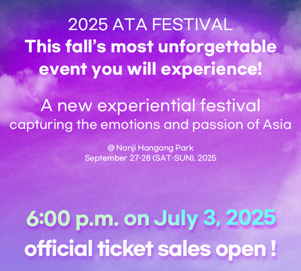 The 2025 ATA Festival will bring together fans and artists at Nanji Hangang Park in Seoul during the last weekend of September.